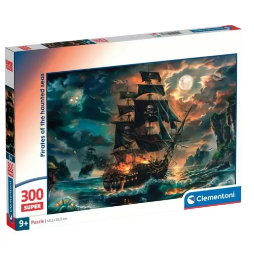 Merüljön el a kalózok világában a Clementoni "Pirates of the haunted seas" puzzle segítségével! Ez a 300 darabos kirakó egy lélegzetelállító jelenetet tár a szeme elé: egy fenséges kalózhajó szeli a viharos, sziklás tengert a telihold misztikus fényében. A koponyás zászlók és a kísérteties felhők garantálják az izgalmas és hangulatos időtöltést.