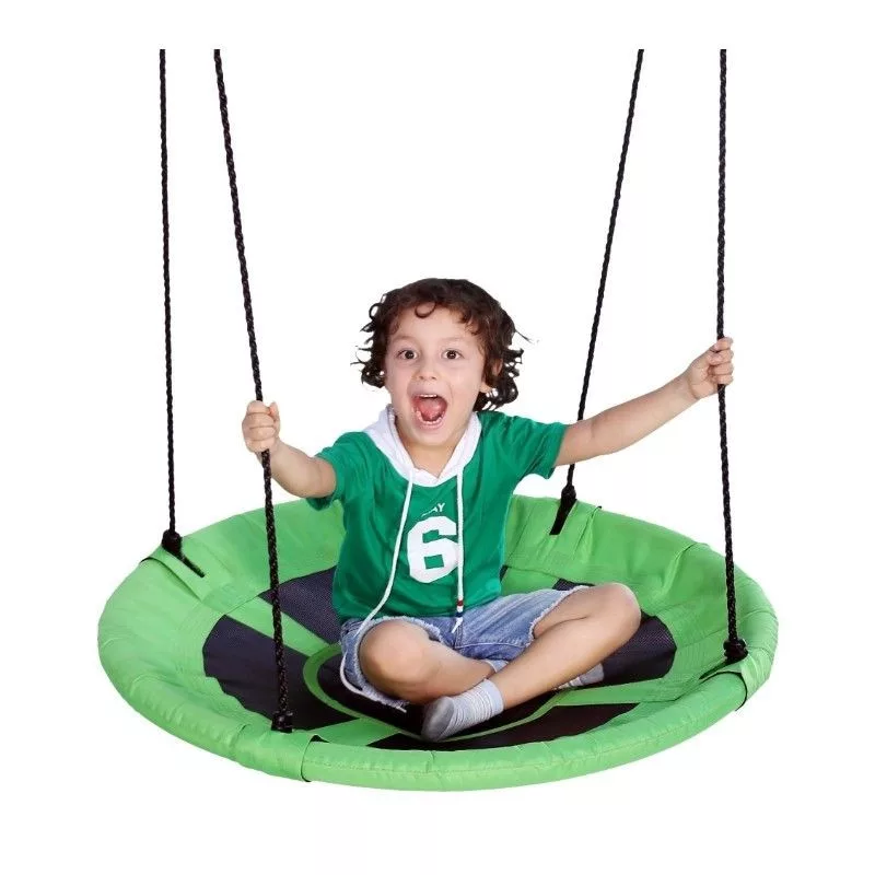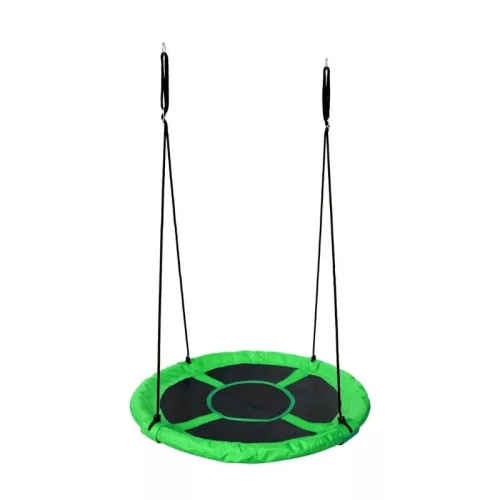 A Wonderland - Fészekhinta egy kül- és beltéren egyaránt használható játék, mely kicsiknek és nagyoknak is örömet nyújt majd. A 110 cm átmérővel készült ülőfelület felnőttek számára is kényelmes pihenést garantál, míg a kicsikre a hintázás élménye mellett fejlesztő hatást is gyakorol az egyensúly és a mozgáskoordináció terén egyaránt. Az erős kialakításának köszönhetően ellenáll az időjárásnak, így a jó idő közeledtével kültéren is felszerelhető. Emellett a gyermekek növekedésével sincs gond, hiszen kötele 105 és 180 cm-es intervallumban állítható, így a hinta magassága teljesen személyre szabható. Zöld színe által rendkívül élénk dísze lesz majd a kertnek.