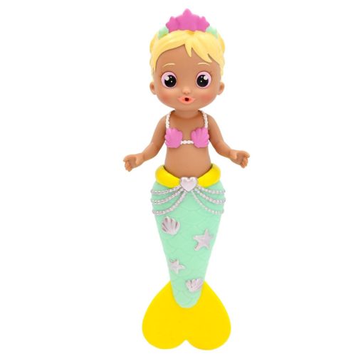 A kb. 22 cm magas, puha műanyagból készült sellőbaba tökéletes méretű a kis kezek számára. A játék nemcsak szórakoztató, hanem fejleszti a gyermekek finommotoros készségeit és serkenti a képzelőerejüket, miközben vidám szerepjátékokat játszanak a kádban vagy a medencében. Cora szőke hajával és sárga-zöld uszonyával egy igazán egyedi karakter.