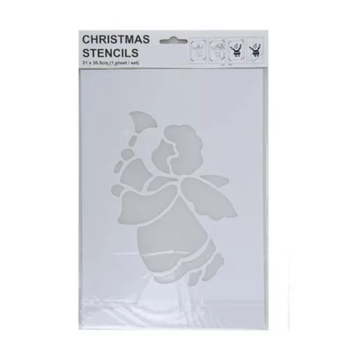 Készítsen egyedi, ünnepi dekorációkat ezzel a trombitáló angyalt ábrázoló karácsonyi stencil sablonnal! A műanyag lap könnyen használható különböző felületeken, így ablakdíszek, ajándékcsomagolások vagy textíliák díszítésére is kiváló.