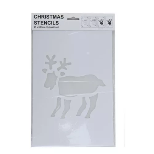 Varázsoljon ünnepi hangulatot otthonába ezzel a könnyen használható, rénszarvas mintájú karácsonyi stencil sablonnal! Ideális ablakok, falak és bútorok gyors és látványos díszítéséhez műhóval vagy festékkel.