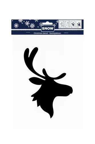 Varázsoljon ünnepi hangulatot otthonába ezzel a rénszarvasfejet ábrázoló stencil sablonnal! Ideális választás ablakok és tükrök gyors és látványos díszítéséhez műhó spray segítségével.