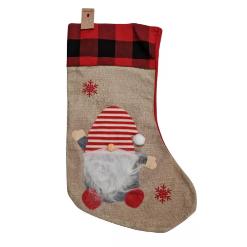 Öltöztesse otthonát ünnepi díszbe ezzel a bájos, manó figurával díszített karácsonyi zoknival! Nagyméretű kialakításának köszönhetően ideális apró ajándékok és édességek elrejtésére, miközben rusztikus bájával emeli az ünnep fényét.