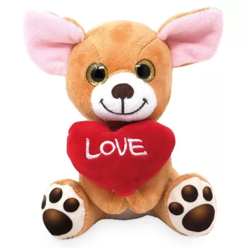 Ülő plüss kutya szívvel - Chihuahua (14 cm)